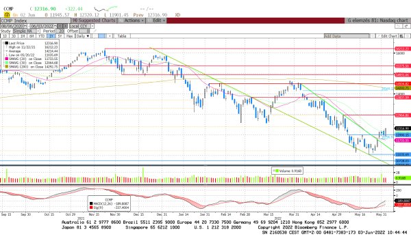 A Nasdaq is áttörte a csökkenő trendvonalat, és itt is további emelkedésre lehet számítani. Ellenállást ezen index esetében is a májusi lokális csúcs jelent, 12.965 pontnál. Támasz 11.990 pontnál található. A technológiai szektorban a csalódást keltő első negyedév után több vállalat is felülvizsgálja stratégiáját, ami hatékonyabb működést eredményezhet számukra.