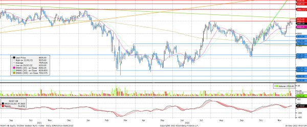 A Richternek sem sikerült tartósan áttörnie a 8.490 forintos szintet. Ez alapján elképzelhető lehetne egy korrekció is, azonban az amerikai gyógyszerfelügyelet (FDA) várhatóan 2-3 héten belül dönthet a Vraylar kiterjesztéséről, ami új perspektívákat nyithat az amerikai piacon. Közben a Richter lassú ütemben, de vásárolja a saját részvényeket, ami extra keresletet generál, így szintén a korrekció ellen hat. Így összességében a 8.490-es szinthez tapadhat a Richter a következő napokban.