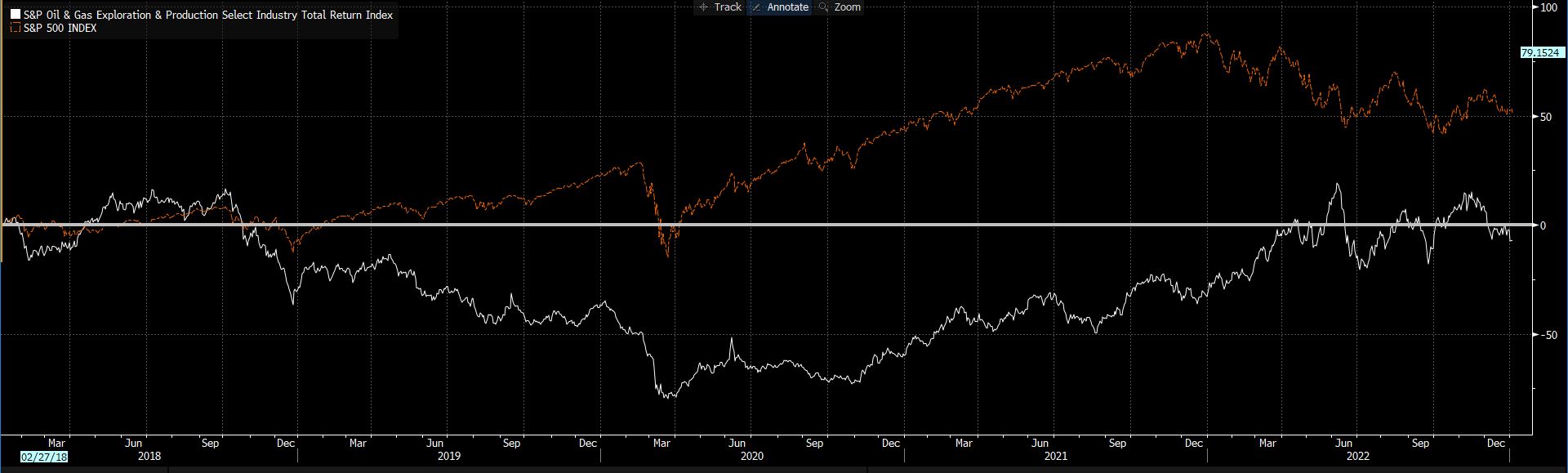 Amíg azt elmúlt 5 évben a S&P Oil&Gáz index gyakorlatilag nulla emelkedést mutatott, míg a S&P500-as 50% felett értékelődött fel, az elmúlt 1 évben az előbbi index 30%-kal emelkedett, míg a szélesebb körű amerikai részvényindex közel 18%-kal zuhant. Azt gondolom, hogy ez a visszarendeződés 2023-ban is folytatódhat, részben a szénhidrogénárak emelkedése miatt bekövetkező javuló fundamentumok, részben a cégek alacsony értékeltsége miatt. Az értékeltség egyébként sokszor annyira a mélyben van, hogy a vállalatoknak érdemesebb osztalékot és/vagy részvényvisszavásárlásokat tenni, mint az alaptevékenységbe fektetni. Ezzel hozzájárulnak az olaj és gázárak emelkedéséhez, mivel így kisebb lesz az amerikai szénhidrogén kínálat.