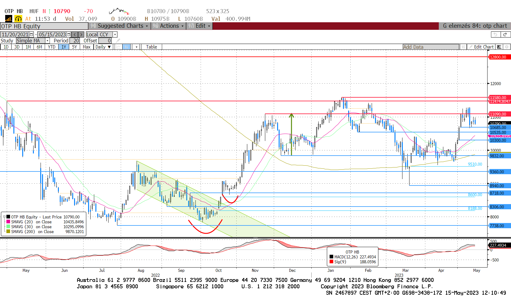 A múlt heti látványos eséssel véget ért az OTP emelkedő pályája. A következő napokban inkább az oldalazásé lehet a főszerep. Hiába lett jó a gyorsjelentés — igaz, nagyrészt egyszeri tételeknek köszönhetően — a pozitív befektetői fogadtatás mégis elmaradt. Ellenállás 11.090 forintnál, támasz pedig 10.685 forintnál látható.