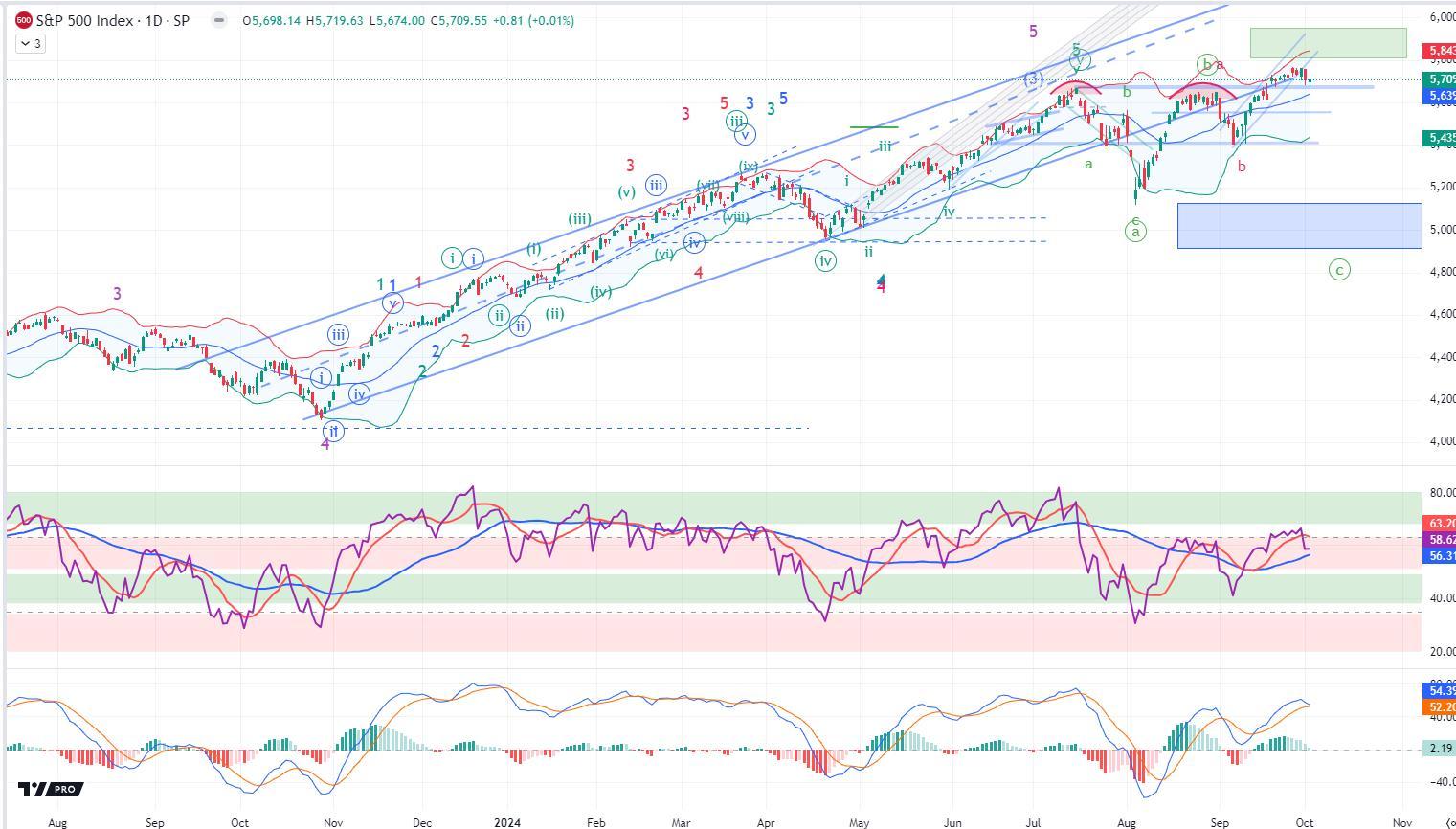 Annak ellenére, hogy egyelőre nem látunk erős jelzést arra vonatkozóan, hogy a felfelé tartó szerkezet befejeződött, az indikátorok és a gyertyák nem mutatnak fordulatra utaló jelet, közeleg egy lehetséges tetőpont, melyből nagy lefordulás érkezhet és az augusztusi mélypont környékére mehet vissza az árfolyam.