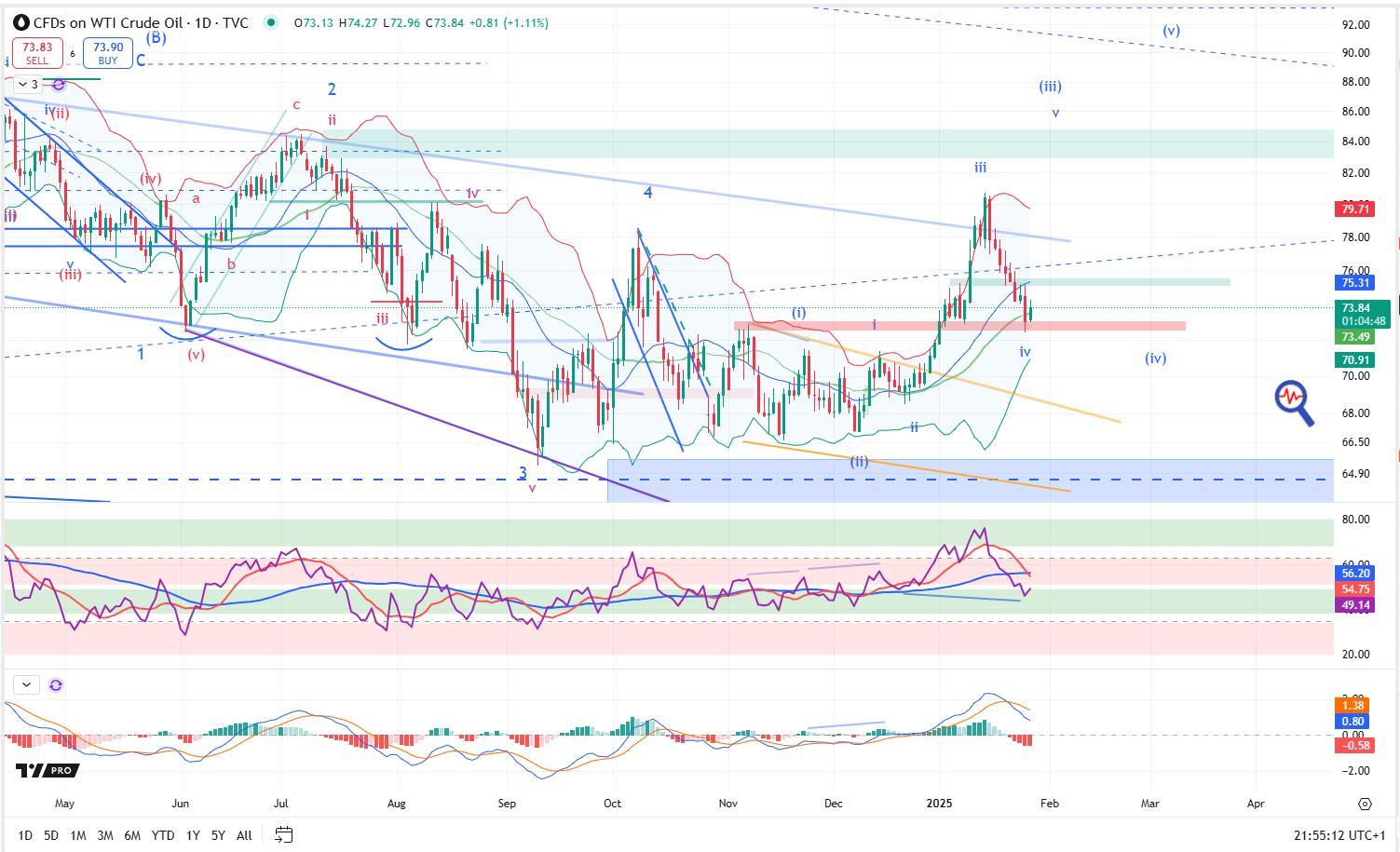 A következő időszakban emelkedésre számítunk, melynek a célára 75,15.