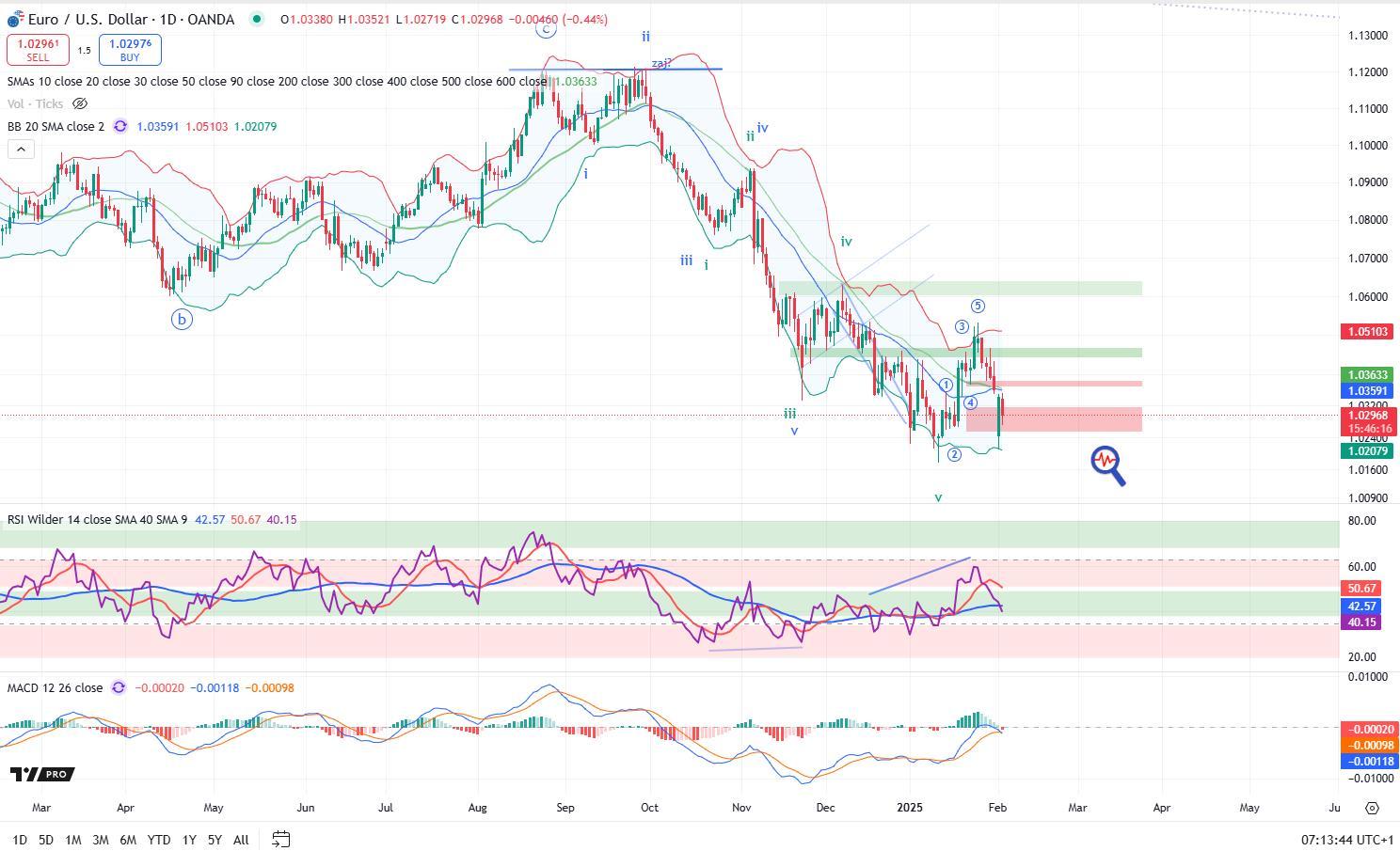 Az előttünk álló időszakban alacsony megbízhatósági szint mellett esésre számítunk, melynek elsődleges célára 1,025, majd emelkedés indulhat, elsődlegesen 1,035 környékére.
