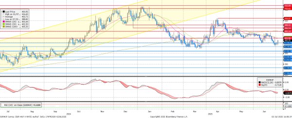 A vártnál gyorsabb leértékelődést mutatott a dollár, ami miatt kedvező helyzetben maradtak a régiós devizák. Azonban a lengyel jegybank döntése kiugrasztotta a bokorból a szerdai 25 bázispontos kamatvágással a forintot. Ezzel rányomta a bélyeget átmenetileg, a jegyzés 400 forint felé került. Akár a 20 és 30 napos mozgóátlagot is tesztelheti az árfolyam a hét hátralevő részében.