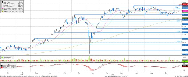 Egy felszúrással csütörtökön új történelmi csúcsra emelkedett a DAX index. Az árfolyam jelenleg a korábbi...