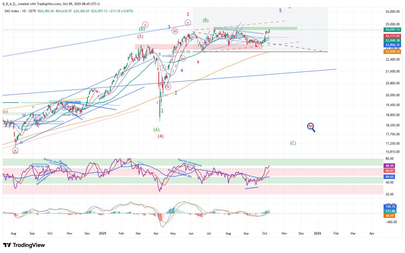 A következő időszakban emelkedésre számítunk, melynek az elsődleges célára 24.578, a másodlagos 24.700.