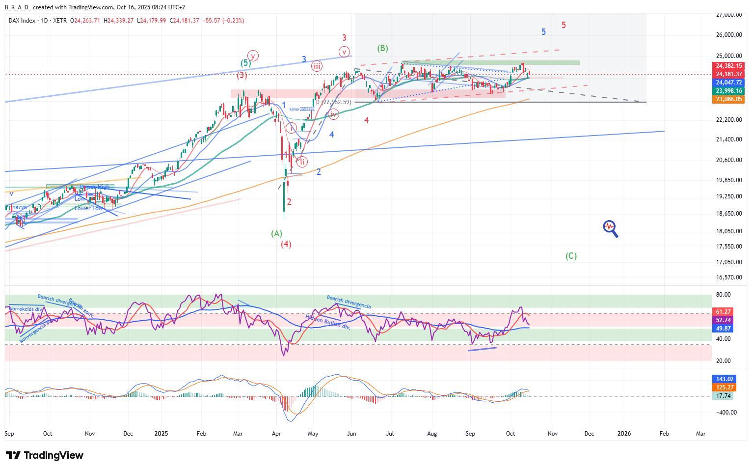 A következő időszakban emelkedésre számítunk, melynek az elsődleges célára 24.450, a másodlagos 24.780.