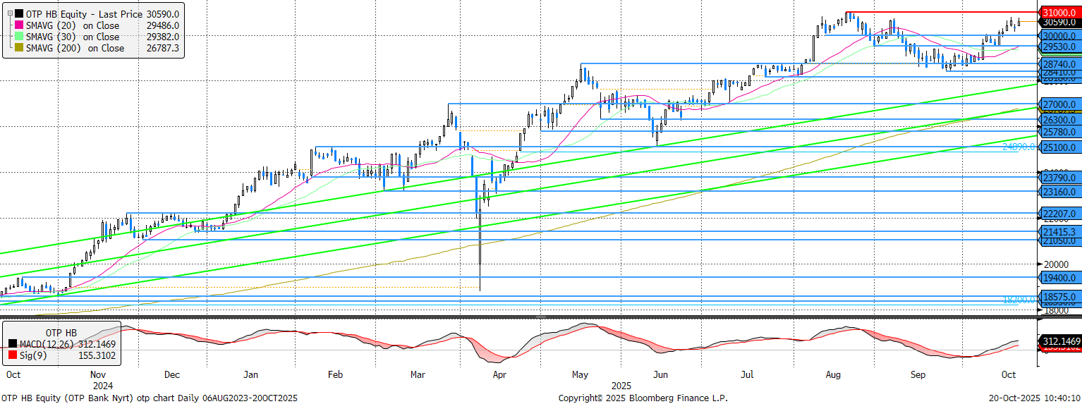 Közelíti a 31.000 forintos történelmi csúcsot az OTP. A