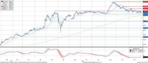 Nincs nagy változás a Magyar Telekom háza táján, változatlanul 1.760 és 1.800 forint között oldalazik az árfolyam. Ráadásul a többi blue-chip papírtól eltérően a negyedéves jelentését majd csak jövő héten fogja közzétenni, így rövidtávon nincs, ami kimozdíthatná az árfolyamot.