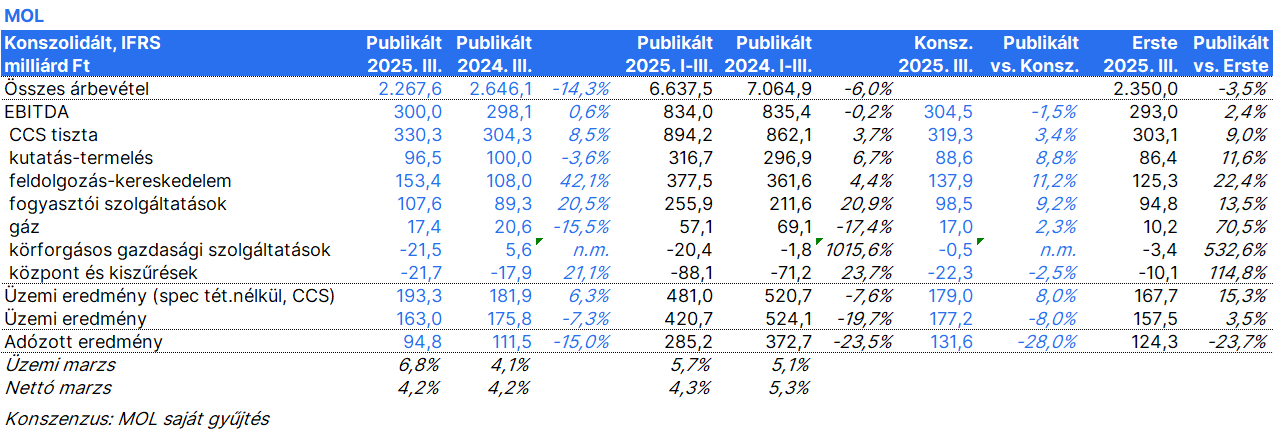 A MOL ma tette közzé 2025. harmadik negyedéves jelentését. A tiszta CCS EBITDA 330,3 milliárd forint volt, ami meghaladta a 319,3 milliárd forintos piaci konszenzust.