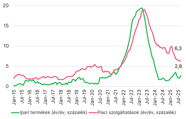 Az ipari termékek és a piaci szolgáltatások inflációja