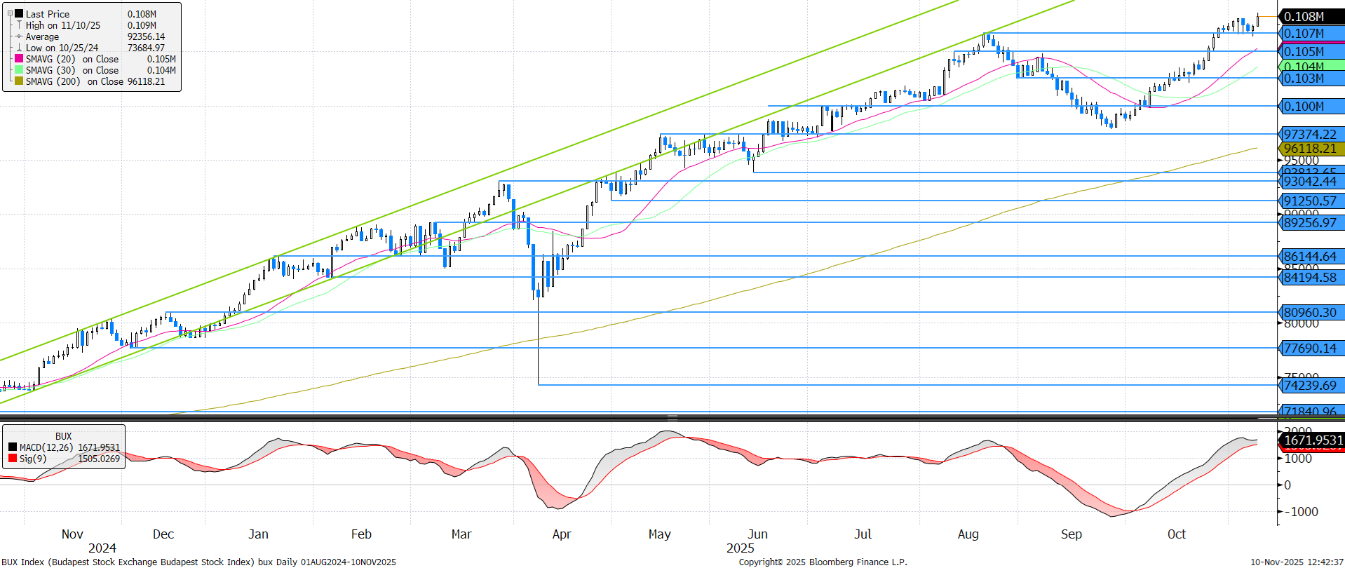 A BUX index visszatesztelte a korábbi történelmi csúcsot 106.720 pontnál, ezt követően azonban tovább folytatta az emelkedést. A...