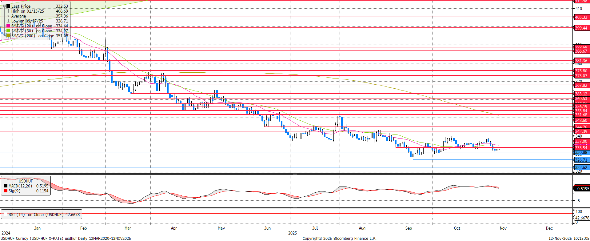 Az amerikai költségvetés kapcsán hat hete fennálló patthelyzet lehetséges megszűnése rövidtávon a dollár mellett szól. Ezt magyar oldalról a kamatelőny ellensúlyozhatja és a technikai kép továbbra is a forintnak kedvező, az MACD negatív szintje és a mozgóátlagok esetében is.