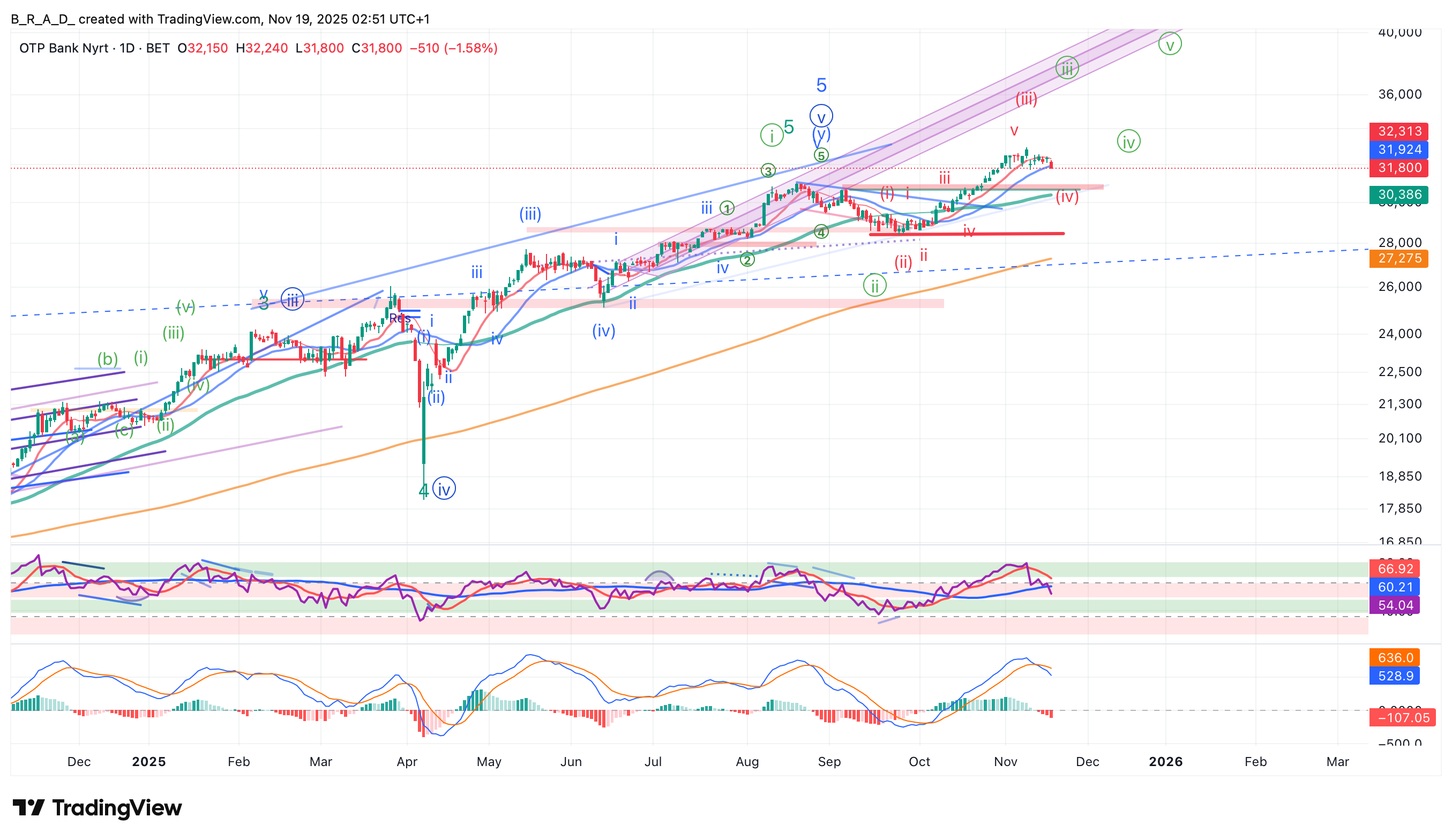 Elsődleges szcenáriónk szerint egy oldalazó, ún. flat korrekció érkezhet a piacra, mely után újabb csúcsra futhat majd a részvény árfolyama. A korrekció egyik ideális célzónája 31.500 környékén, a 20 napos mozgóátlagnál található. A long szcenáriónk kritikus szintje: 30.000, ennek törésénél csökken lényegesen az esélye a további északi irányú folytatásnak.