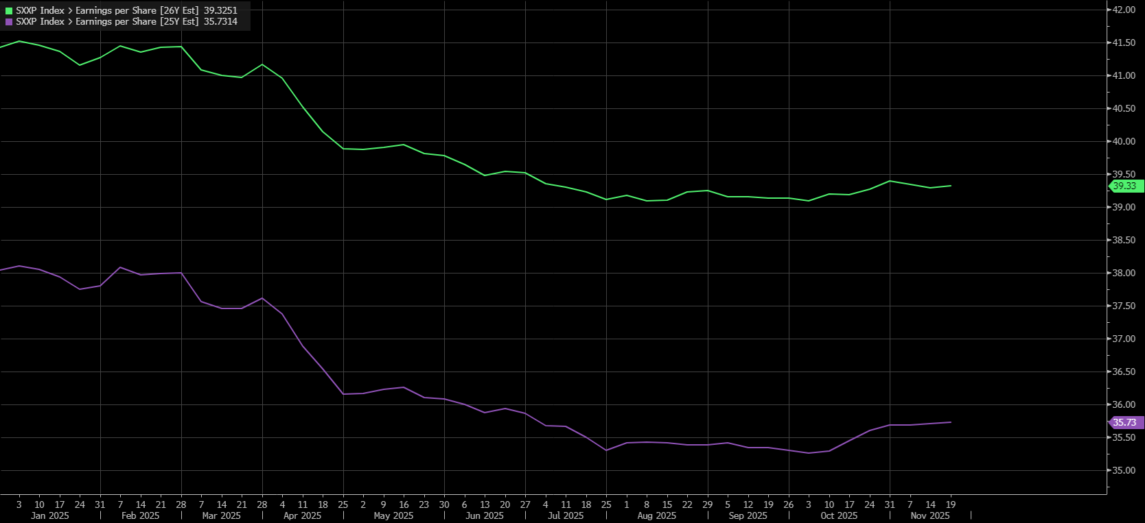 SXXP eredményvárakozás 2025-re és 2026-ra