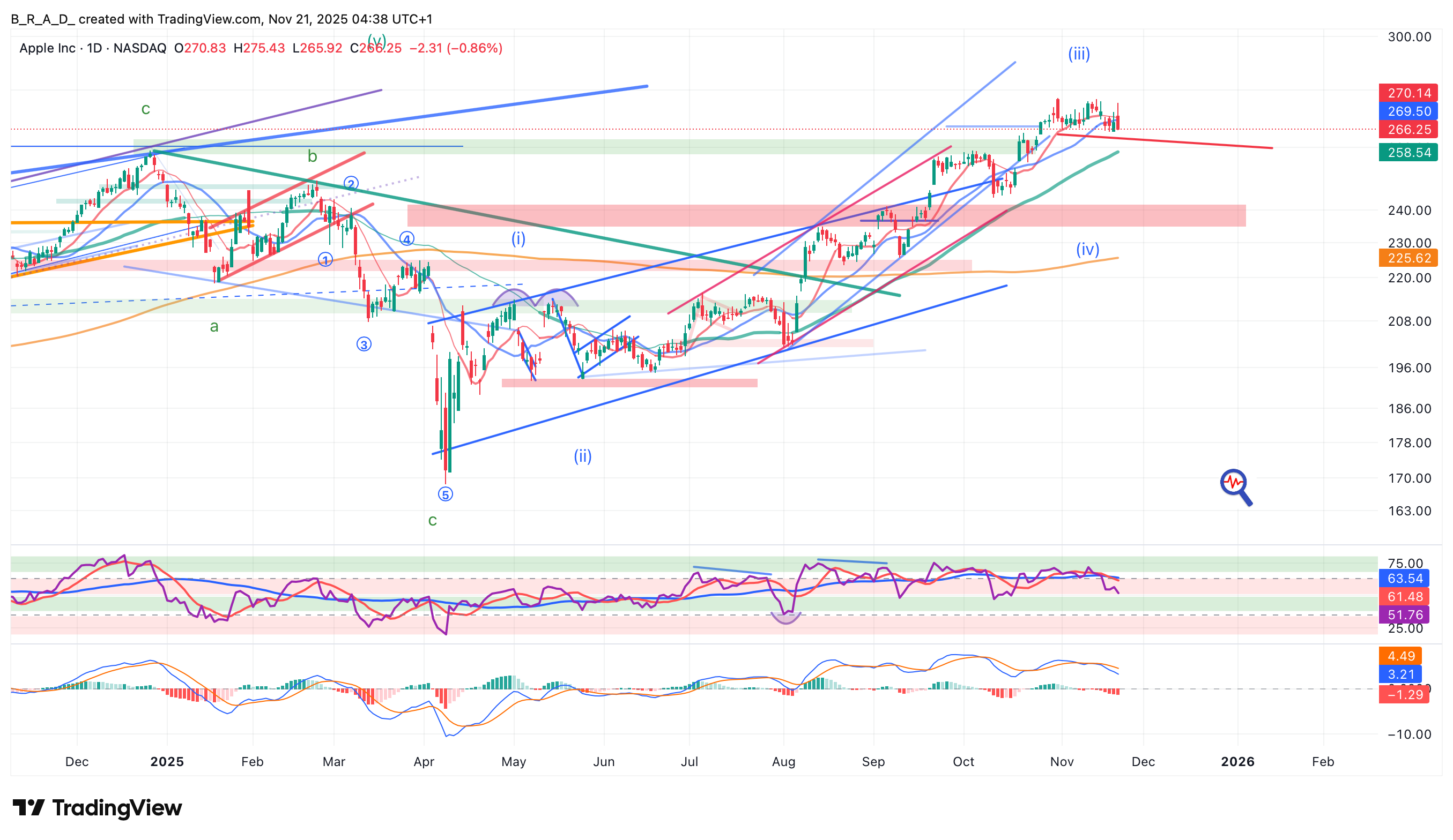 A déli irányú mozgást továbbra is korrekcióként értékeljük, annak befejezését követően emelkedésre számítunk. Amennyiben a fenti célszint, ami egyben egy bull támasz is elesik, akkor egy nagyobb korrekció futását láthatjuk, mely akár 240 környékére is lehozhatja a részvény árfolyamát.