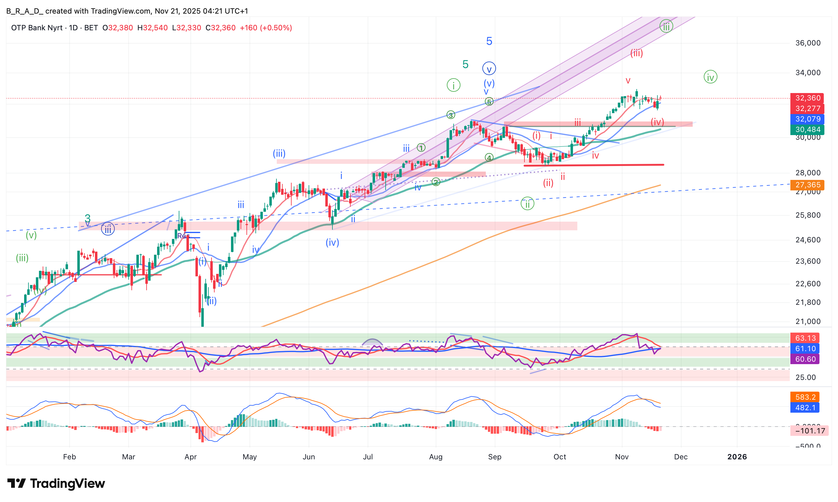Elsődleges szcenáriónk szerint egy oldalazó, ún. flat korrekció érkezhet a piacra, mely után újabb csúcsra futhat majd a részvény árfolyama. A korrekció egyik ideális célzónája 31.500 környékén, a 20 napos mozgóátlagnál található. A long szcenáriónk kritikus szintje: 30.000, ennek törésénél csökken lényegesen az esélye a további északi irányú folytatásnak.
