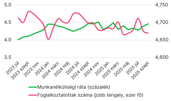 Az elmúlt hónapokban lassan emelkedő tendenciát láttunk a munkanélküliségi rátában, és a foglalkoztatottak száma is valamelyest visszaesett. A magyar munkaerőpiac feszessége tehát összességében némileg csökkent, azonban dacára a harmadik éve stagnáló gazdasági teljesítménynek, és a csak visszafogottan javuló kilátásoknak, a munkapiac viszonylagos stabilitása megmaradt, miközben a bérkiáramlás erős.