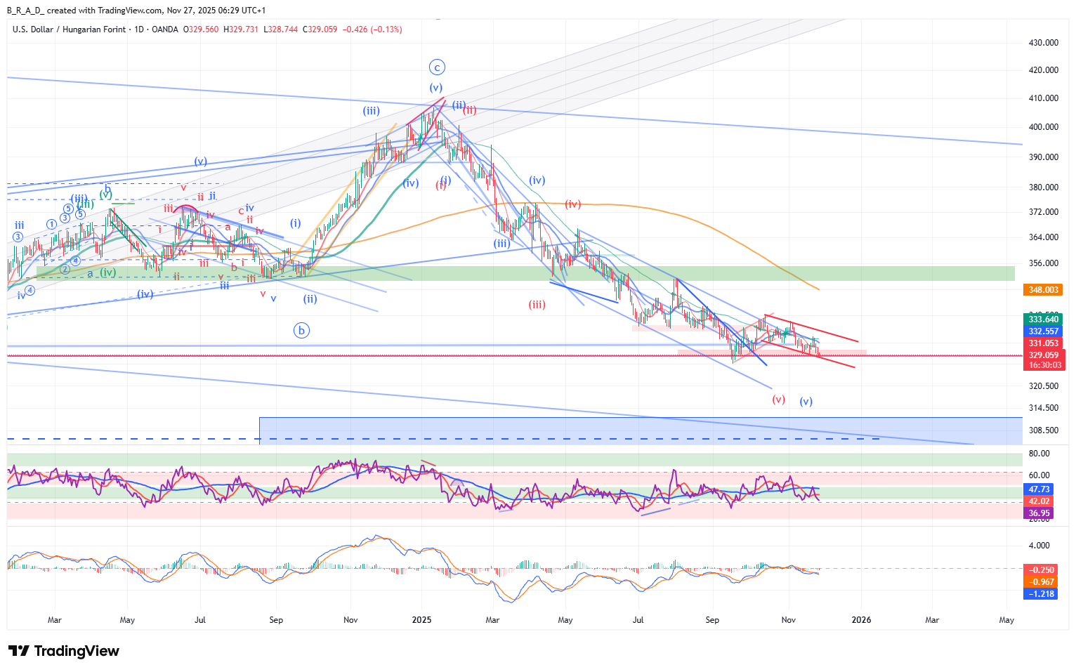 A következő időszakban esésre számítunk, az elsődleges célár 328,00, a másodlagos 326,40.