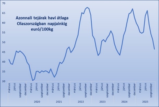 Bár – minden híresztelés ellenére – a nyerstej exportunkban már nem játszanak jelentős szerepet, az olasz azonnali tejárak jelzik legképletesebben az európai tejszektor hirtelen és nagy hullámvölgyét. Legutóbbi csúcsa, ez év júniusa óta több mint negyedével csökkent az azonnali tejár Olaszországban.