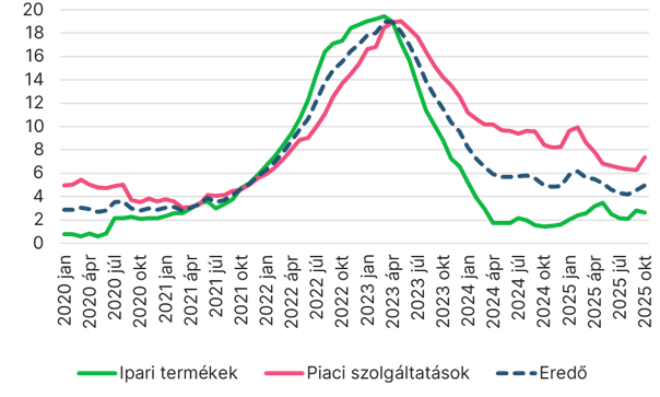 Hó/hó alapon alapvetően semleges hónap lehetett a november, csak kisebb mértékű árváltozásokkal. A járműüzemanyagárak enyhén csökkenhettek havi alapon, az élelmiszerárak stagnálhattak, emellett valószínűsíthető, hogy a piaci szolgáltatások esetében sem látunk most nagyobb mértékű átárazásokat. Az erős forint hatásainak megjelenése, ennek mértéke a fogyasztói árakban továbbra fontos kérdés.