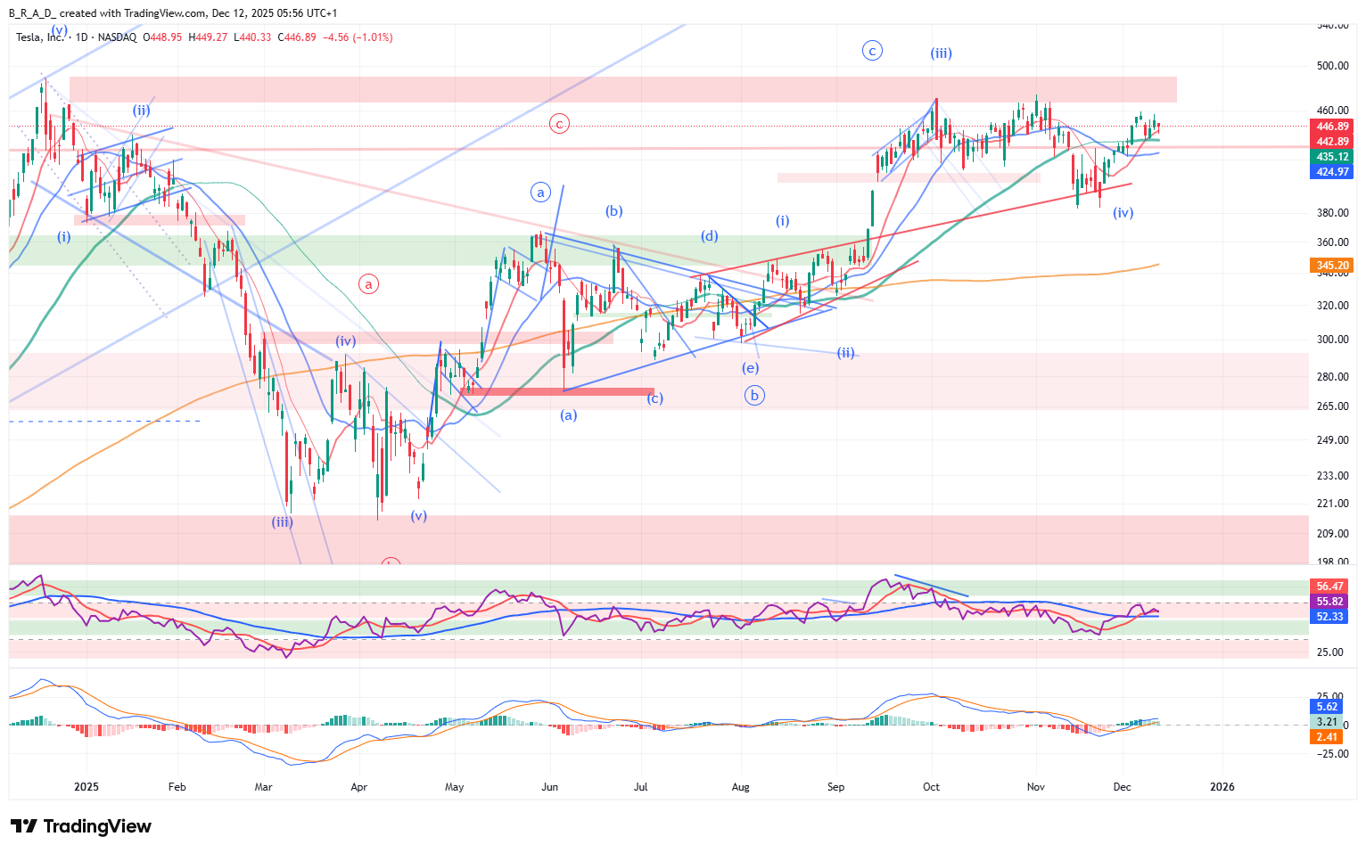 Az elsődleges számozásunk szerint elkészült egy oldalazó korrekció, mely után visszatérhet a trend és emelkedés érkezhet a piacra. Az elsődleges szcenáriónkra veszélyt jelent, hogy az 50 napos és 20 napos mozgóátlag kereszteződése állta útját a mozgásnak, ráadásul az emelkedés és a lefordulás arra utal, hogy északi irányba korrekció haladt. Egy lendületes északi irányú megindulás, 435 leküzdése az elsődleges szcenárió irányába billenti el a valószínűségeket, míg a fenti szintről, vagy pár ponttal lejjebb történő elakadás és lefordulás ez utóbbi irányába.