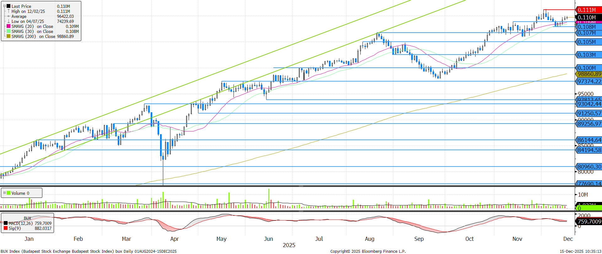 A rövidtávú, 20 és 30 napos mozgóátlagok visszatesztelését követően ismét emelkedésnek indult a BUX, melyben elsősorban az OTP támogatja. A következő napokban akár új történelmi csúcsra is emelkedhet az index, így, ha minden jól megy, akár 40% fölötti emelkedéssel is zárhatja az idei évet a BUX index.