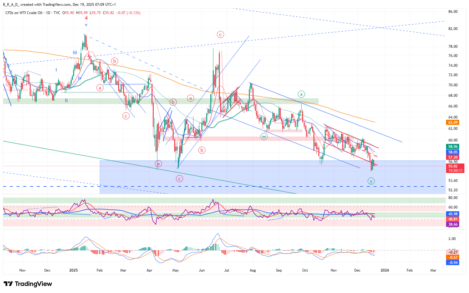 A következő időszakban – alacsony megbízhatósági szint mellett – esésre számítunk, az elsődleges célár 54,60, a másodlagos 53,35.