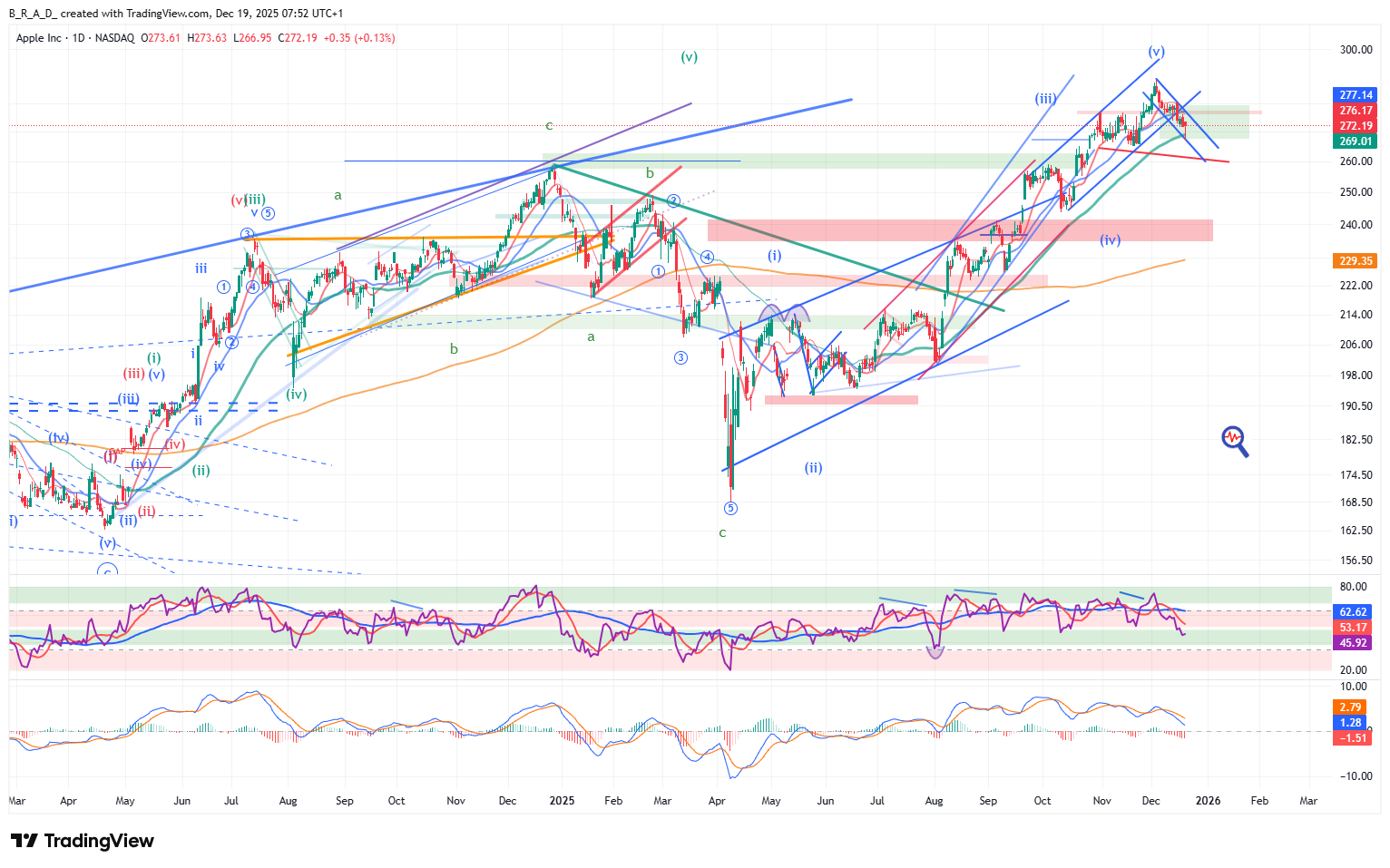 A tegnapi kereskedésben megjelent egy zöld gyertya, amennyiben erre megerősítés érkezik, akkor a következő napot ismét a sávban töltheti az árfolyam, azaz emelkedés érkezik a piacra és eljuthat egészen a sáv tetejéig az árfolyam. Amennyiben nem érkezik megerősítés, sőt elveti a tegnapi mozgást, akkor további eséssel az 50 napos mozgóátlag szintjét (269 környékre) célozhatja meg a piac.