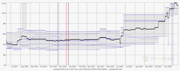 Előző generációs (DDR4) RAM kiskereskedelmi árak növekedése