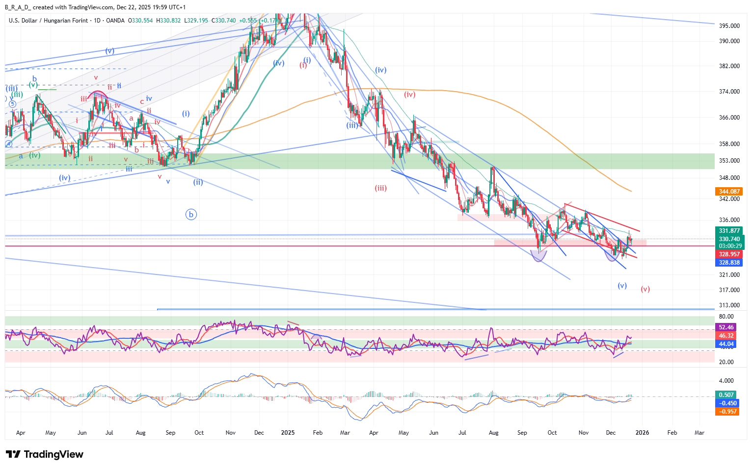 Az előttünk álló időszakban további emelkedésre számítunk, melynek az elsődleges célára a 332,50, a másodlagos 334,00.
