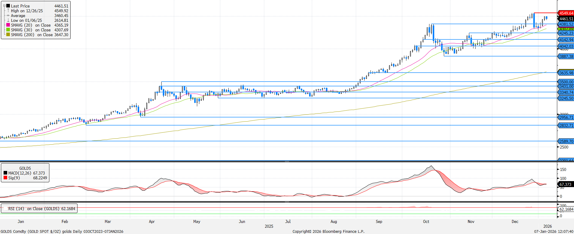 Izgalmas hetek vannak az arany mögött. A múlt heti mindenkori csúcsot követően éles korrekció következett, majd innen kezdett újból építkezni. Az Egyesült Államok idézte elő a menedékeszköz volatilitását a geopolitikai tevékenységével, viszont az idei Fed kamatvágások is segíthetik hosszútávon az arany útját. Az MACD vételi jelzése elmaradni látszik, azonban az emelkedés tovább folytatódhat némi erőgyűjtést követően.
