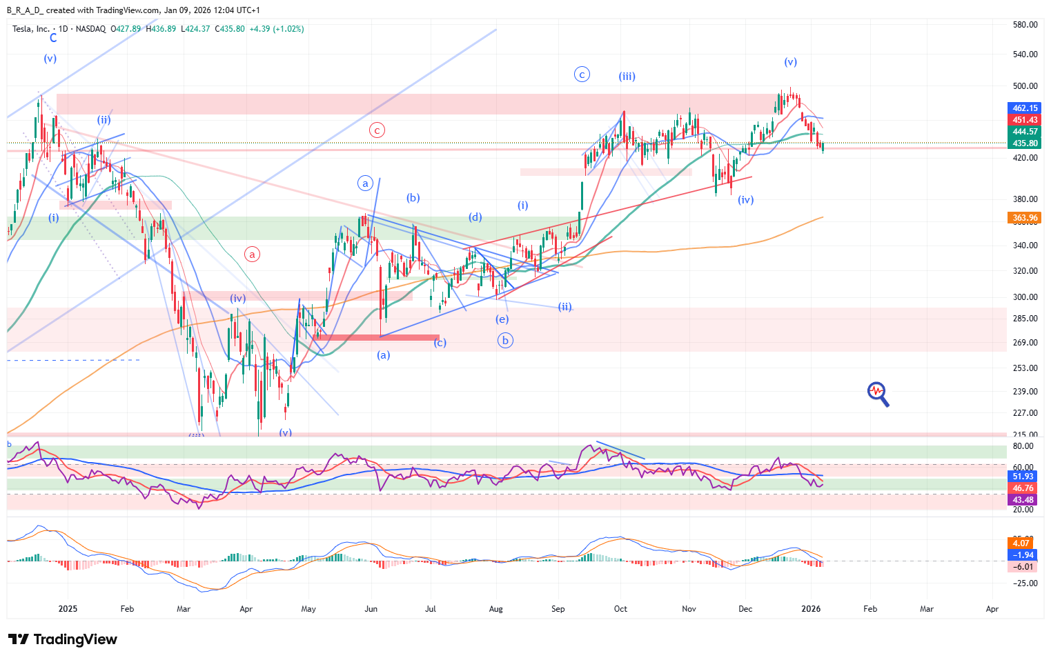Az ellenállás sikeresen megfogta az emelkedést, lefordult az árfolyam, ezzel nagy eséllyel az északi irányba tartó szekvencia befejeződött és trendfordulat, vagy nagyobb korrekció kezdődött meg a piacon. Mindez azt jelenti, hogy hosszabb távon, nagy eséllyel 400 alá fog kerülni a papír árfolyama. Az időtávot nehéz pontosan megmondani, de a hónap végéig reális esélye van annak, hogy ez bekövetkezik.