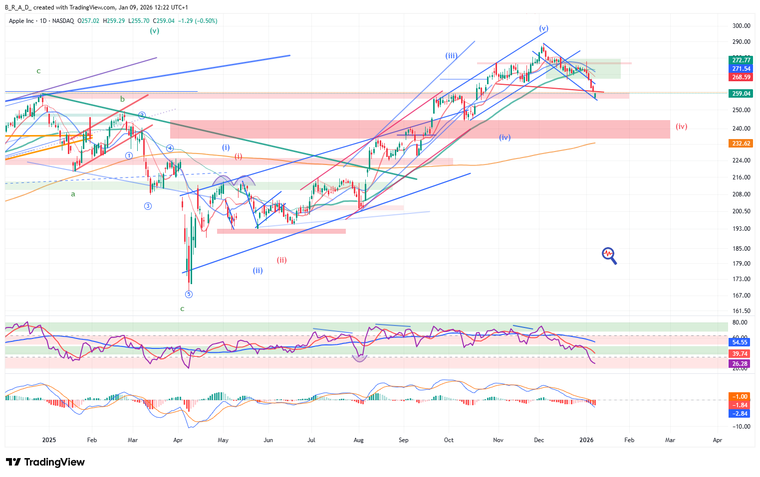 Letört az 50 napos mozgóátlag, az RSI a fenntartható bear zónába került, fel kell készülni arra, hogy valószínű egy nagyobb korrekció vagy trendforduló történt és hosszabb távon minimum a nagy ellenállási zónáig leeshet az árfolyam.