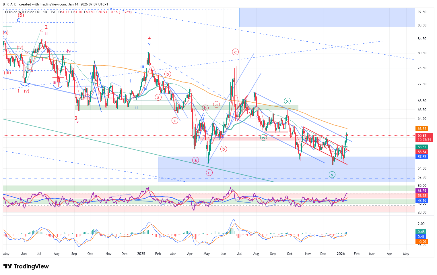 A következő időszakban sávban mozoghat az árfolyam, a sáv 59,39-62,16.