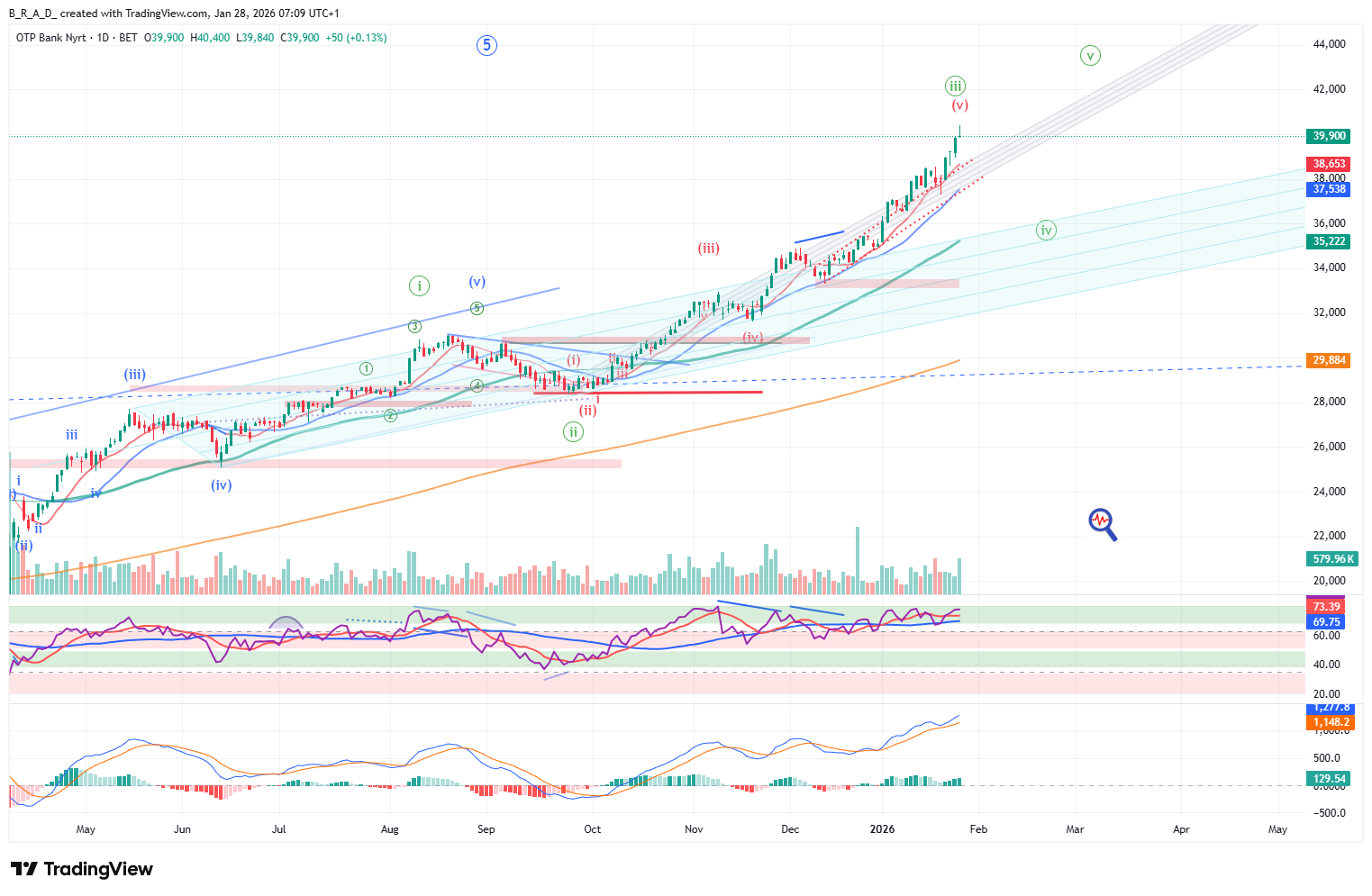 A következő napokban, elsősorban az intraday idősíkon látott adatok alapján, korrekcióra, esésre számítunk, melynek az elsődleges célára 39.500, a másodlagos 39.250.