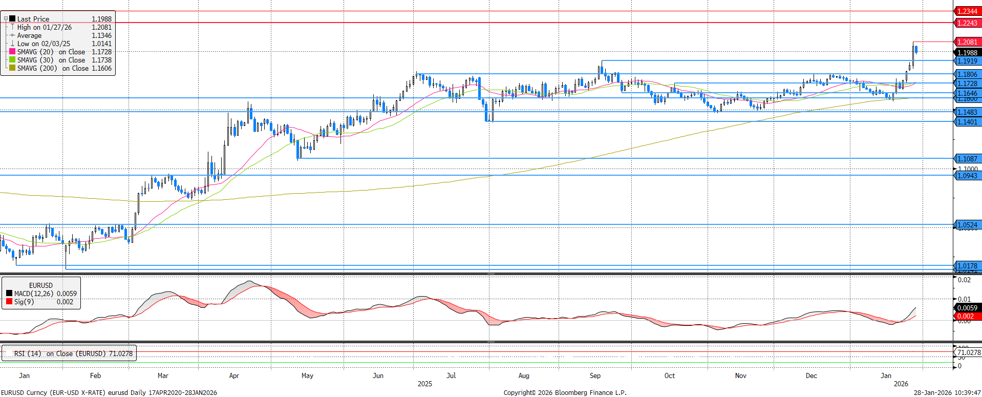 Kimaxolta az EKB tavalyi tolerancia plafonját az EURUSD az 1,2-es árfolyam elérésével. Ha ezen a szinten maradna a jegyzés, lehetséges, hogy felerősödnének az intervenciós hangok a jegybankban.