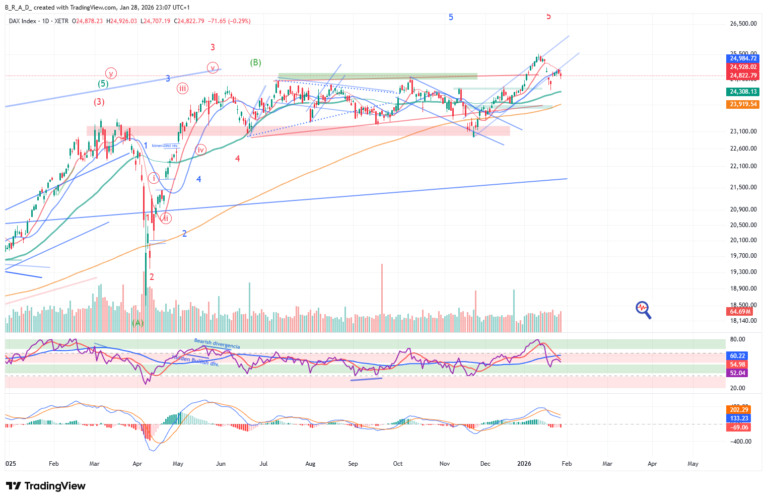 A következő időszakban – alacsony megbízhatóság mellett - emelkedésre számítunk, az elsődleges célár ismét 25.050, a másodlagos 25.290.