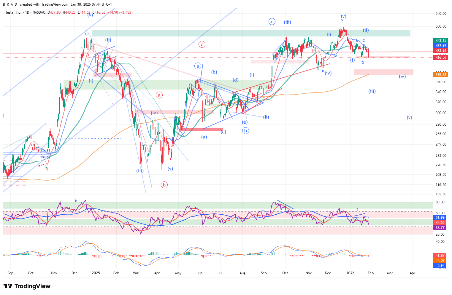 Erős bear jelzés jelent meg a charton, letört a 20 hetes mozgóátlag, miközben egy lehetséges elliotti számozás szerint elkészülhetett egy északi irányba tartó nagyobb szekvencia. A réssel eséssel és a letöréssel hosszabb távon hatalmas tér nyílt meg az árfolyam előtt, ami egy nagyobb korrekció esetében is lehozhatja az árfolyamot 380-400 közé.
