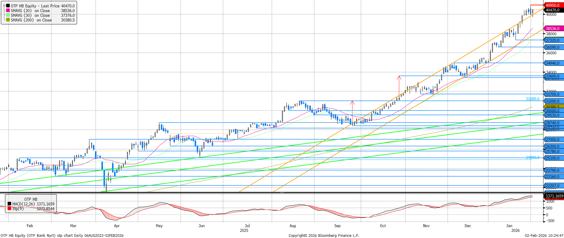Az OTP még az emelkedő trendcsatornából is kitört felfelé, azonban ez az állapot aligha lesz tartós, főként a rekordnak...