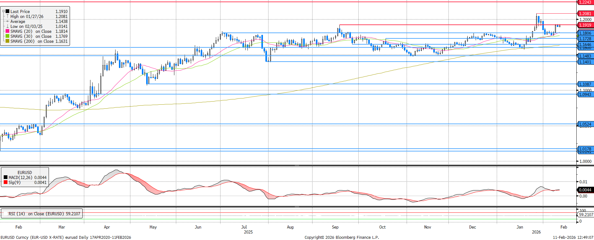 Megfogta a 20 napos mozgóátlag a dollár erősödését az euróval szemben. Az eladási jelzést követően inkább gyorsan vételbe fordult át az MACD is, amivel a szeptemberi lokális csúcs adta 1,192-es ellenállásig kapaszkodott vissza az EURUSD. Első körben erőgyűjtés látszik kibontakozni, de kár lenne leírni az áttörés lehetőségét, aminek az esélyeit az amerikai munkaerőpiaci adatok befolyásolhatják.