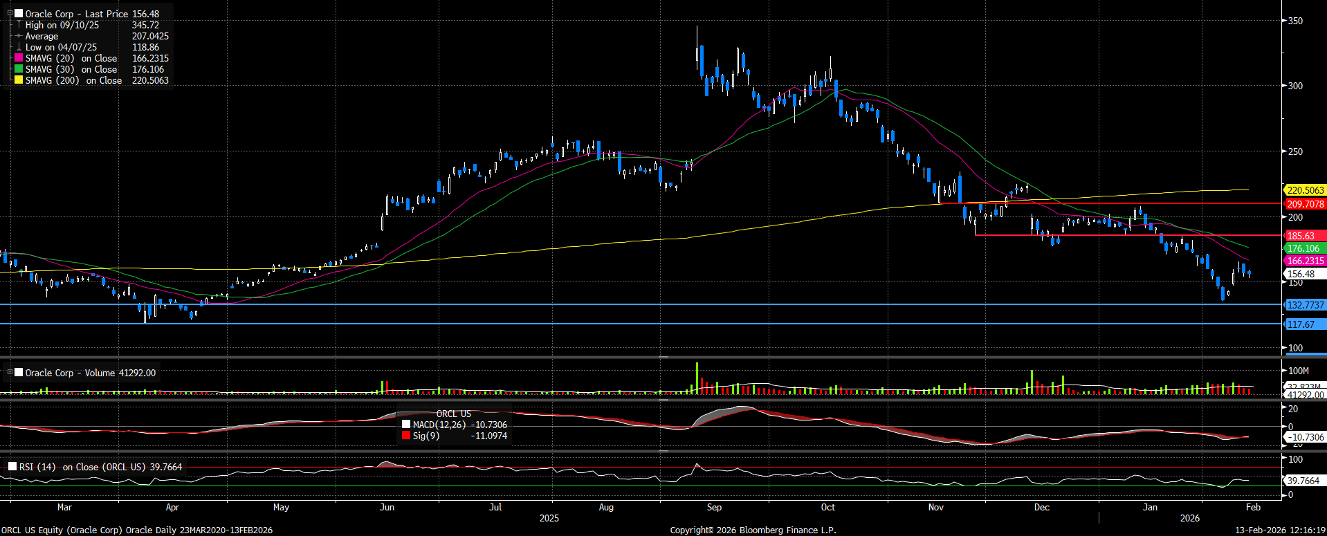 Az Oracle decemberben, a legutóbbi negyedéves jelentésében arról számolt be, hogy felhő-üzletágának bevétele 33%-kal nőtt éves összevetésben, a teljes bevétele pedig 13%-kal múlta felül az egy évvel ezelőttit. Az AI-hoz kapcsolódó, még nem teljesített rendelésállomány közel 440%-kal emelkedett egy év alatt, és meghaladta az 500 milliárd dollárt. Ebből 300 milliárd az OpenAI-jal kötött öt éves megállapodáshoz kapcsolódik, mely 2027-ben veszi kezdetét. Az Oracle árfolyama mégis 10% fölötti eséssel reagált a negyedéves jelentésre, még úgy is, hogy a részvényenkénti nyereség 38%-kal magasabb volt, mint amire az elemzők számítottak.