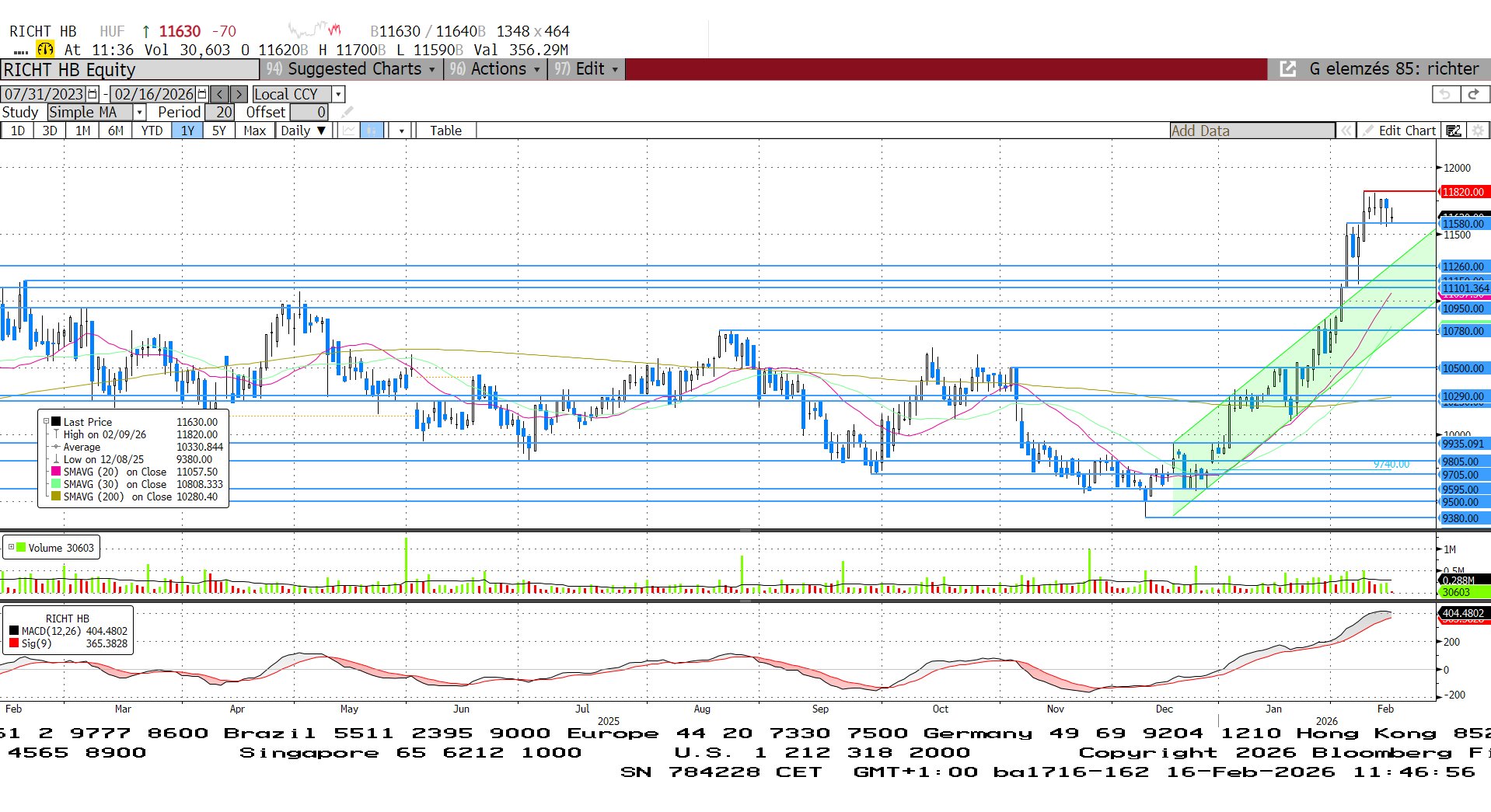 A február eleji erőteljes felpattanás után lassabb fokozatra kapcsolt a Richter. Egy héttel ezelőtt még új történelmi csúcsra menetelt, de itt már túlvetté vált. A lendület alábbhagyott, és oldalazásra váltott az árfolyam. Az MACD indikátor hamarosan lefelé fordulhat, ami eladási jelzést hozhat, de ez egyelőre még nem történt meg.