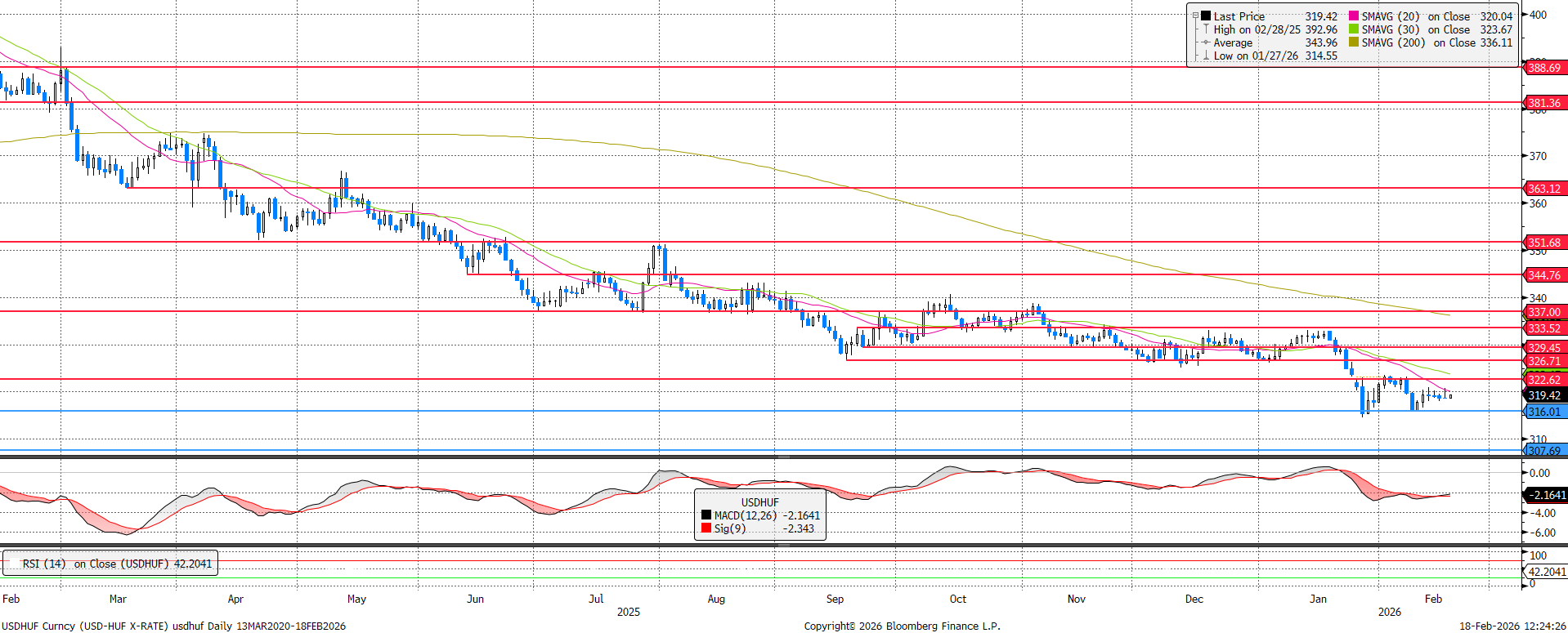 A 316-os támaszról való felpattanást követően csak a 320 körüli árfolyamig volt ereje a dollárnak erősödni a forinttal...
