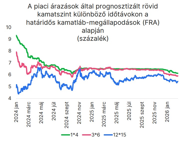 A piaci árazások által prognosztizált rövid kamatszint különböző időtávokon a határidős kamatláb-megállapodások alapján