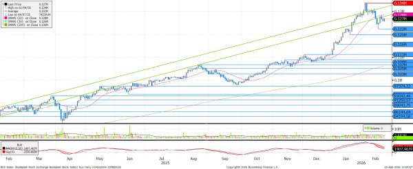 A hó eleji, egészséges korrekciót követően stabilizálódni látszik a BUX index. Ebben támogató szerepet játszik a múlt héten kezdődött gyorsjelentési szezon is, hiszen az Erste előrejelzései szerint rekord évet zárhattak a blue-chip cégek. Támaszt a múlt heti lokális mélypont jelent 122.333 pontnál, míg ellenállást a 20 napos mozgóátlag jelenthet 128.377 pontnál.