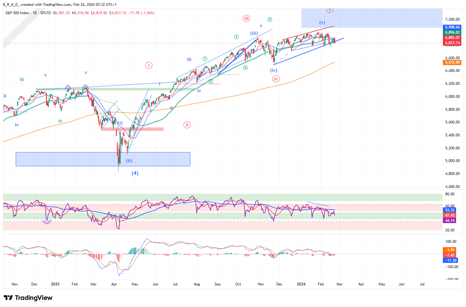 Az ék alsó száránál: S&P500 - 2026/15 - napi