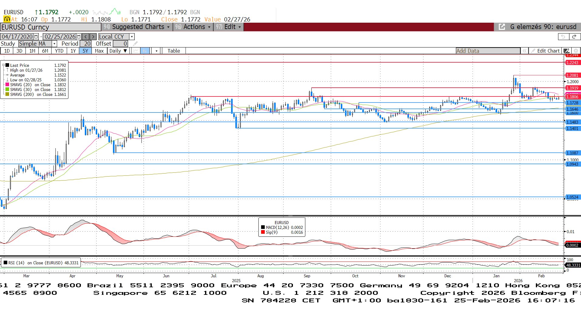 Bár az MACD indikátor továbbra is lefelé mutat, az elmúlt napokban oldalazás jellemezte az EURUSD devizapár mozgását. Az...