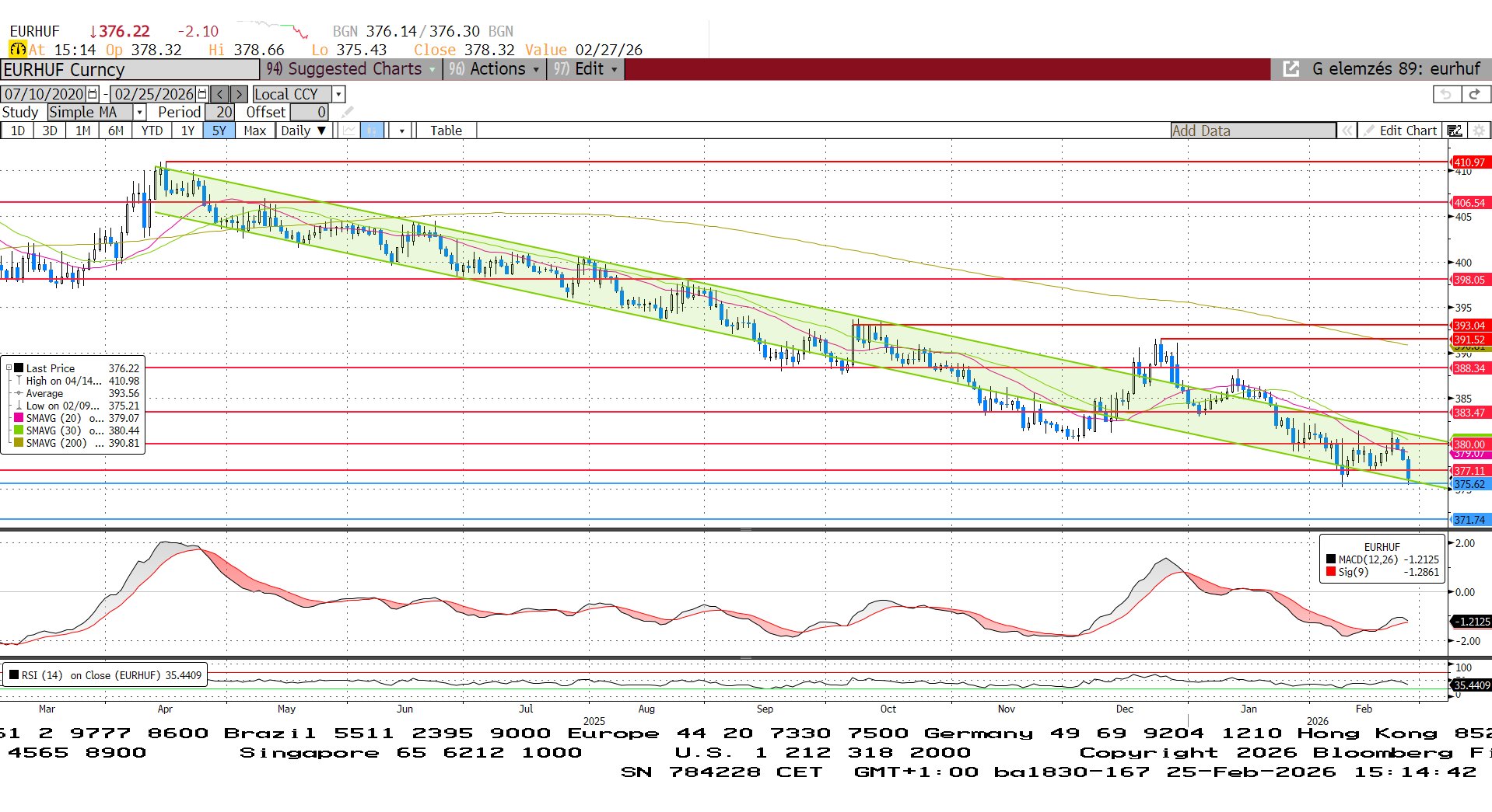 A csökkenő trendcsatornában haladt tovább az EURHUF keresztárfolyam. A múlt hét végén a csatorna felső éle...
