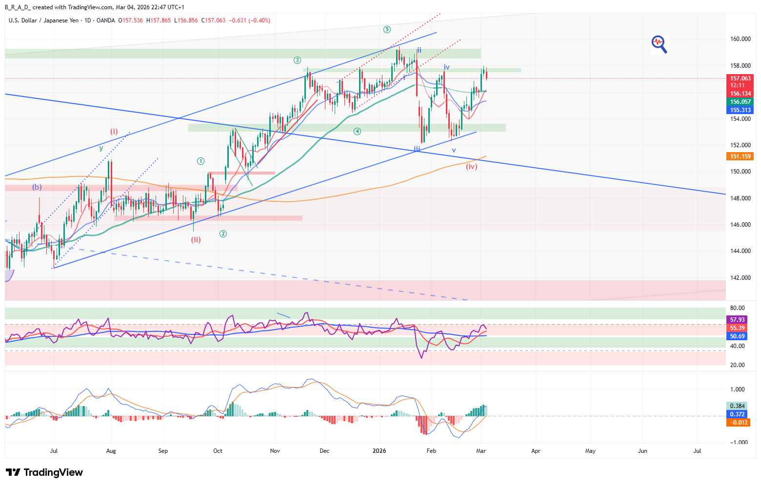 Megjelent és megerősítést kapott egy long indikátor-konfiguráció, melynek elsődleges célára 157,50-nél a következő nagyobb ellenállásnál található.